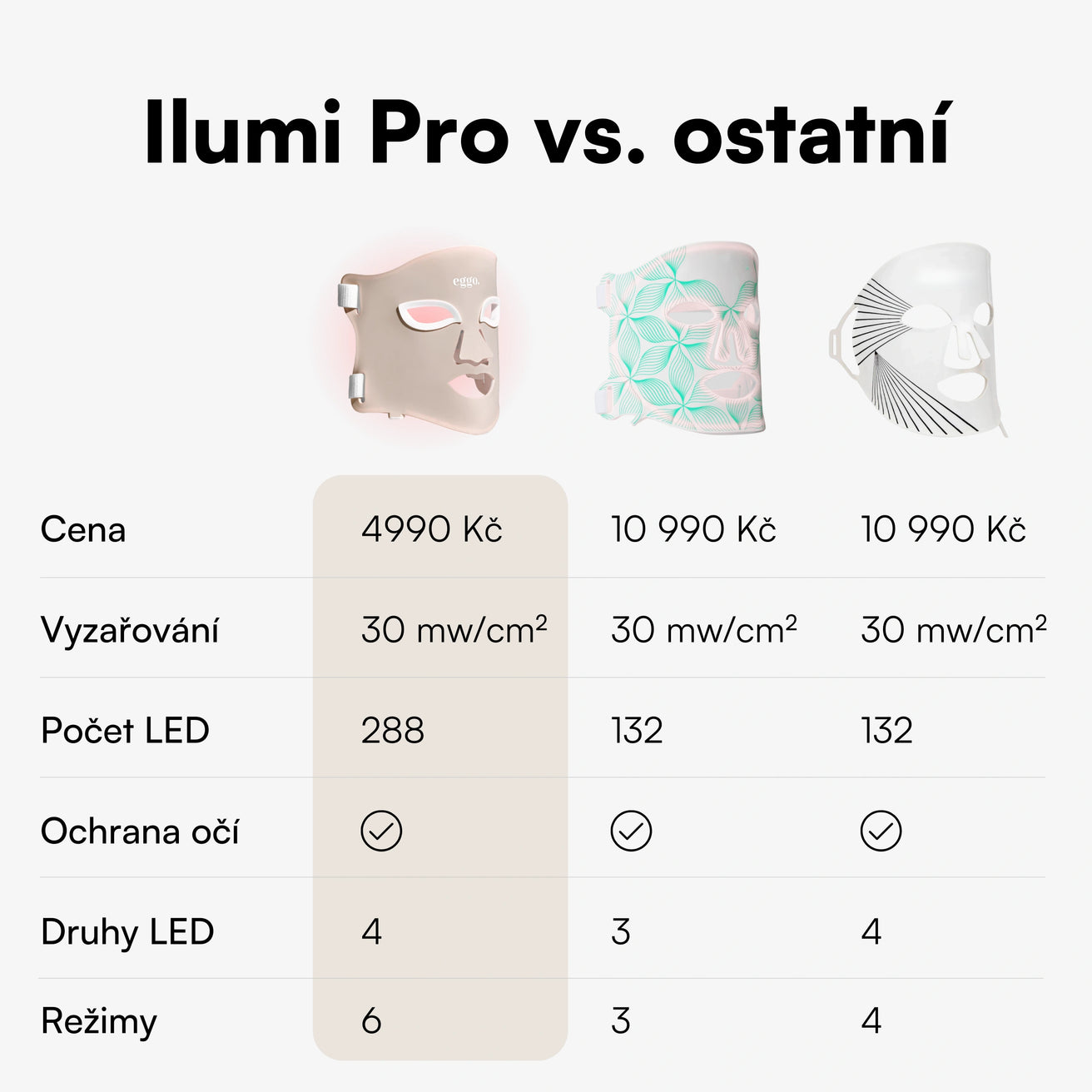 Ne všechny masky LED světelné terapie jsou stejné - je dobré se zaměřit na design, který padne tvému životnímu stylu. Zároveň budeš chtít svého času využívat co nejlépe a je proto dobré si vybrat masku, která padne pohodlně na obličej. Je LED pleťová maska vhodná pro každého? Ilumi Pro se nedoporučuje pro jedince mladší 22 let, uživatele náchylné na záchvaty nebo fotosenzitivitu, trpící rakovinou kůže nebo diagnostikovanou alergií na silikon nebo plast. Nepoužívej masku během těhotenství, plánovaného těhotenství nebo kojení. Maska nebyla testována pro použití u těhotných nebo kojících žen a proto zde existuje možnost neznámého rizika pro fetus, novorozeně nebo těhotné ženy. Maska by se neměla používat na kůži typu V a VI (Fitzpatrickova stupnice).